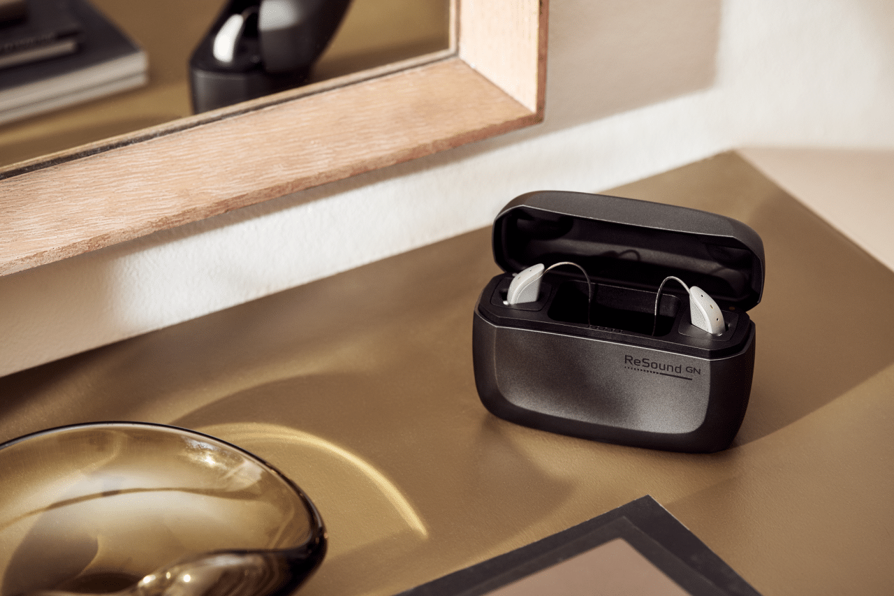 ReSound’s rechargeable hearing aids have several stylish on-the-go options with different charging station docks, which give your hearing aid’s rechargeable lithium-ion battery up to a full day of reliable battery life. You’ll never have to fuss over changing a battery ever again.